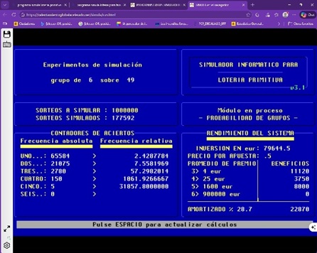 Software experimental de simulación para lotería primitiva, bonoloto y otros juegos de azar tipo 6/49